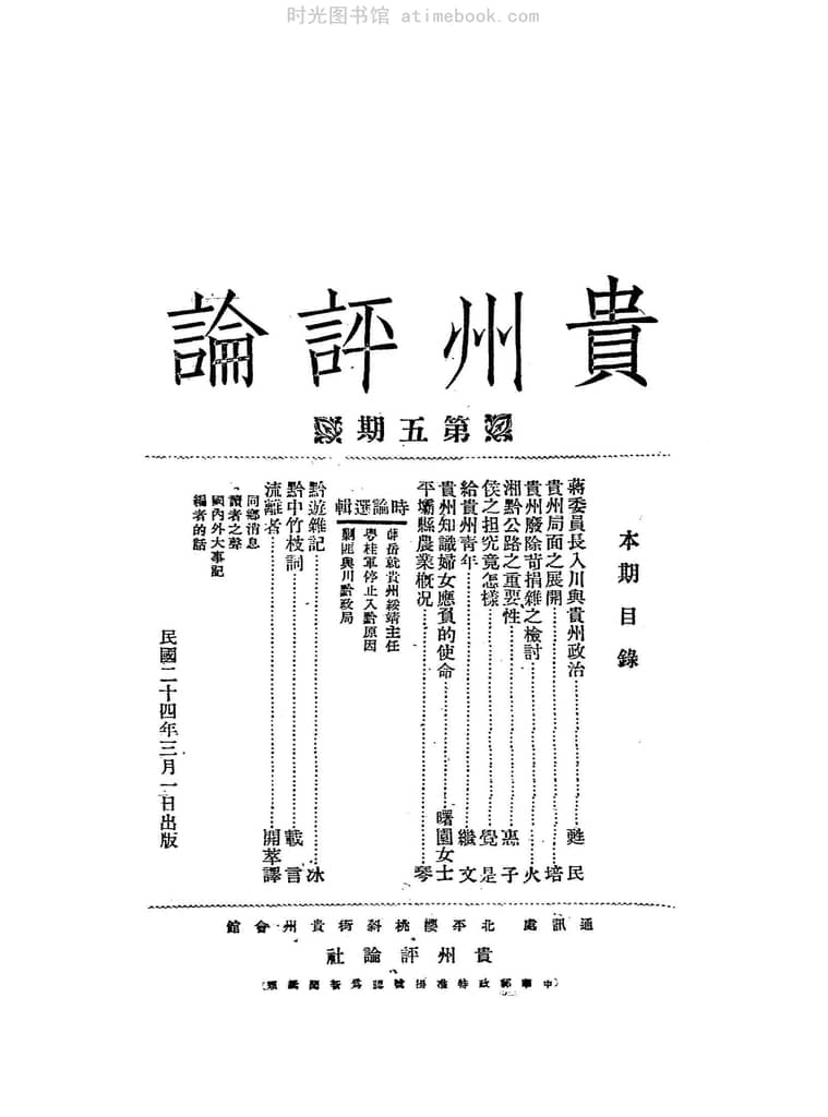 网盘路径:/时光图书馆珍藏系列/书籍文件/老杂志、老期刊/民国期刊/贵州/《贵州评论》1935-1937年合集.db