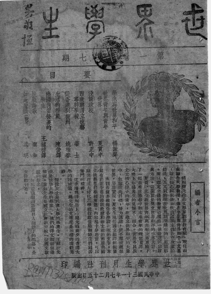 网盘路径:/时光图书馆珍藏系列/书籍文件/老杂志、老期刊/民国期刊/四川/《世界学生》(重庆)1942-1943年合集.db