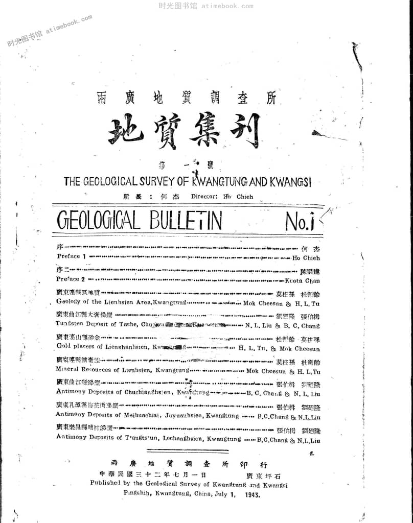 网盘路径:/时光图书馆珍藏系列/书籍文件/老杂志、老期刊/民国期刊/广东/《两广地质调查所地质集刊》(广州)1943-1949年合集.db