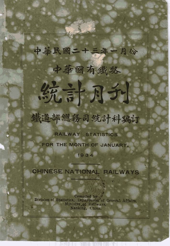 书籍名称:《中华国有铁路统计月刊》(南京)1934-1934年合集