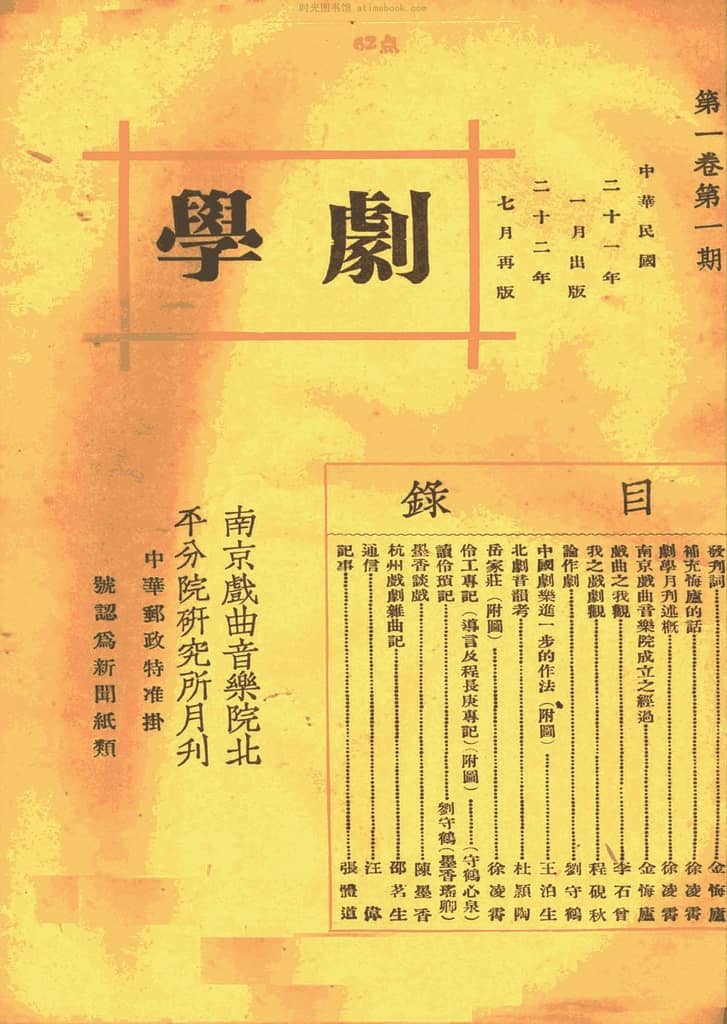 网盘路径:/时光图书馆珍藏系列/书籍文件/老杂志、老期刊/民国期刊/上海/《剧学月刊》(上海)1932-1934年合集.db