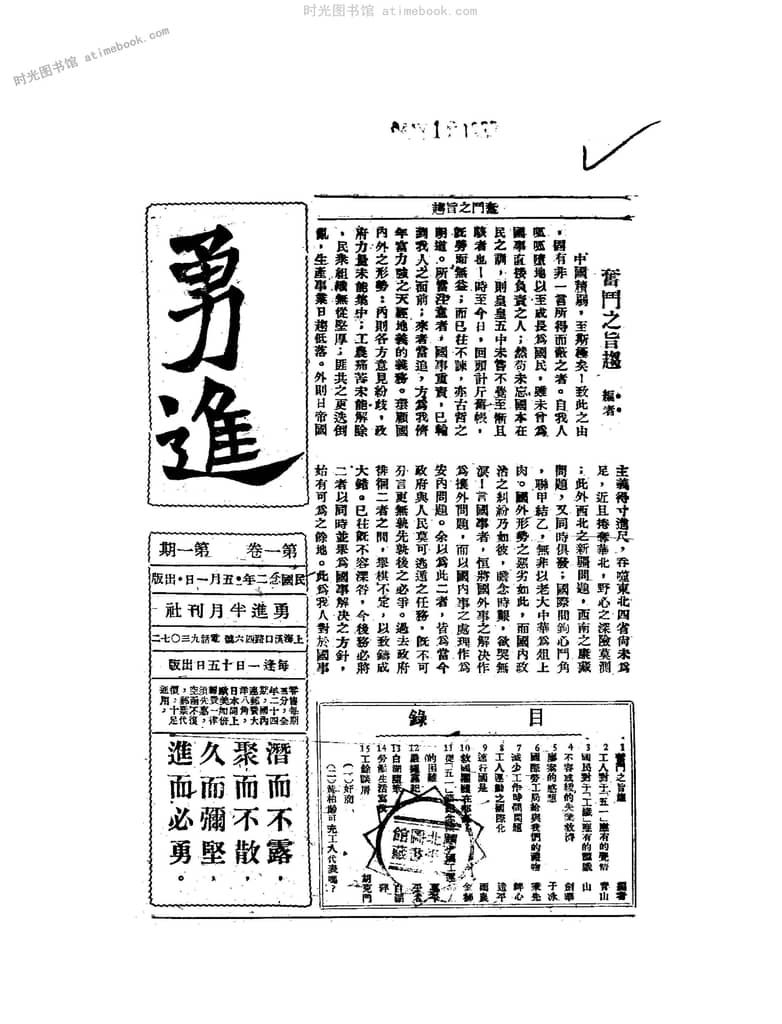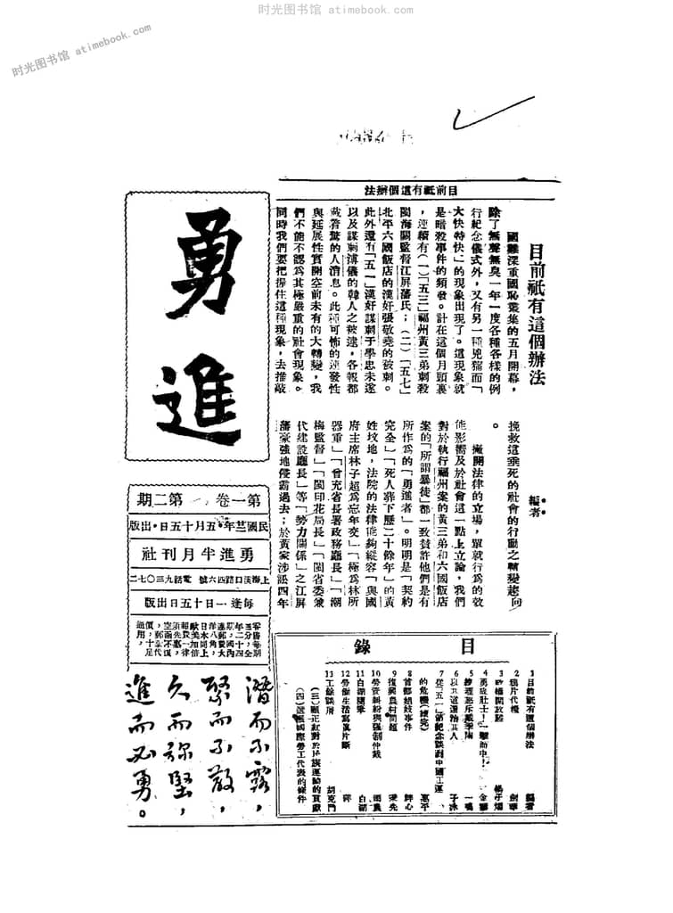 网盘路径:/时光图书馆珍藏系列/书籍文件/老杂志、老期刊/民国期刊/上海/《勇进》(上海)1933-1935年合集.db