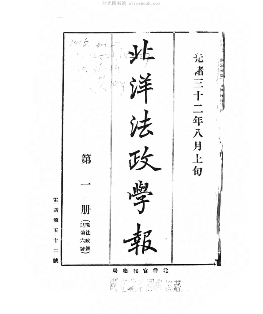 网盘路径:/时光图书馆珍藏系列/书籍文件/老报纸/天津/《北洋法政学报》(天津)1906-1907年合集.db