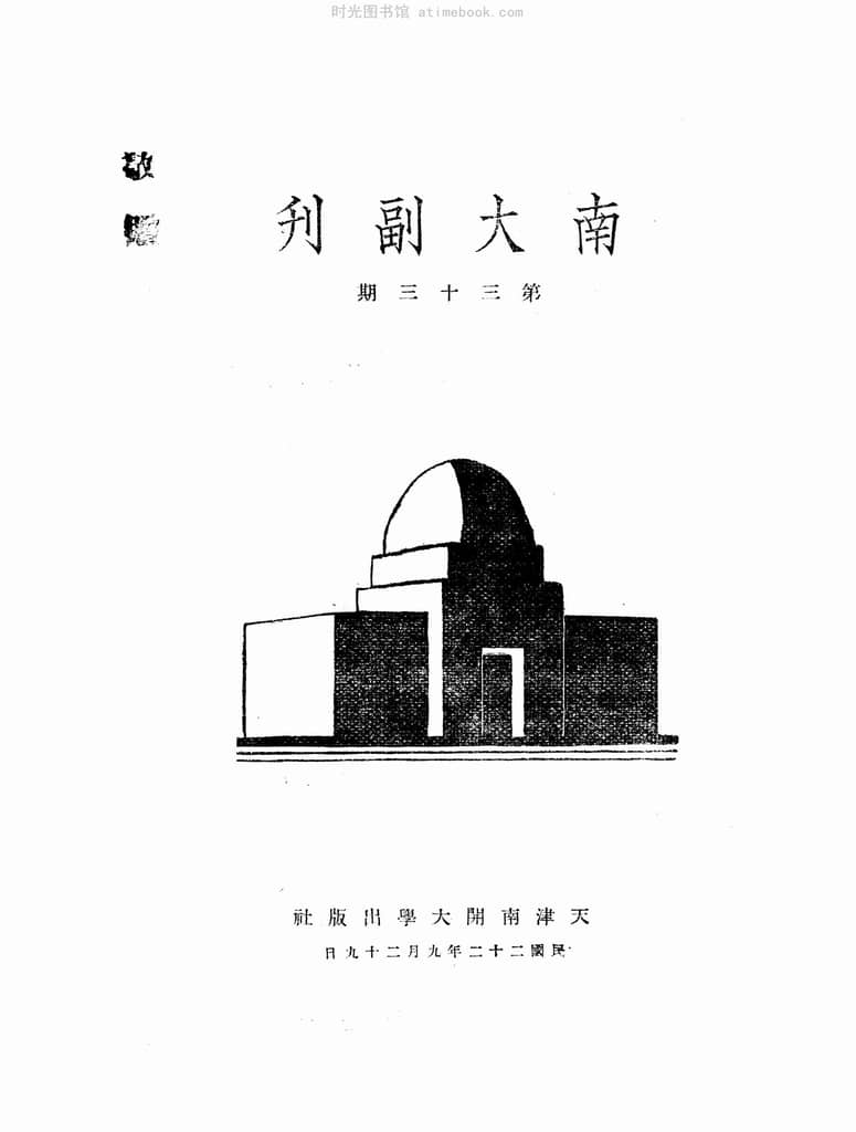 网盘路径:/时光图书馆珍藏系列/书籍文件/老杂志、老期刊/民国期刊/天津/《南大副刊》(天津)1933-1936年合集.db