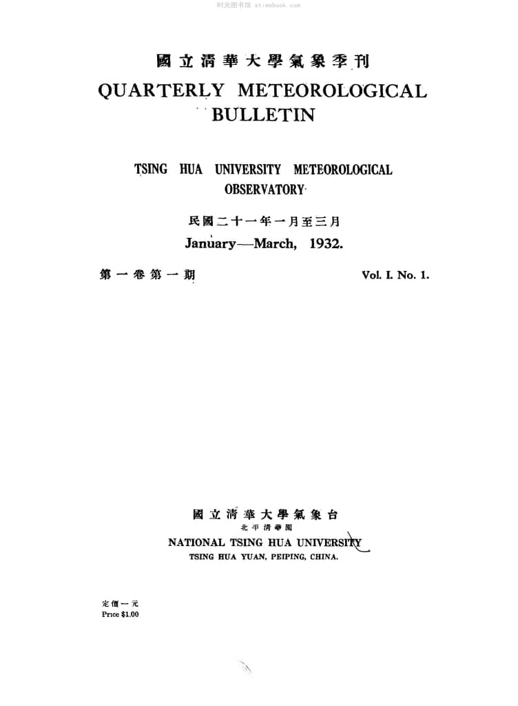 书籍名称:《国立清华大学气象季刊》(北平)1932-1936年合集