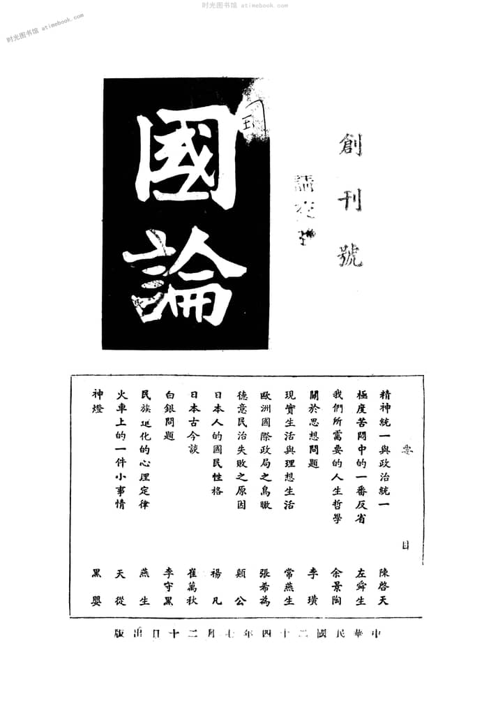 网盘路径:/时光图书馆珍藏系列/书籍文件/老杂志、老期刊/民国期刊/上海/《国论》(上海)1935-1942年合集.db