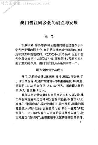 | 网盘路径:/时光图书馆珍藏系列/书籍文件/老图书/《晋江文史资料选辑_第18辑_晋江人在澳门专辑》电子版合集.db | ||
