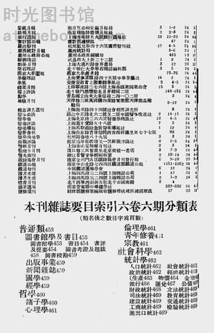 | 网盘路径:/时光图书馆珍藏系列/书籍文件/老图书/《最近杂志要目索引(第六卷第六期至第七卷第二期)》电子版合集.db | ||