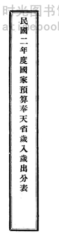 | 网盘路径:/时光图书馆珍藏系列/书籍文件/老图书/《民国二年度国家预算奉天省岁入岁出分表》电子版合集.db | ||