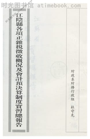 | 网盘路径:/时光图书馆珍藏系列/书籍文件/老图书/《江阴县各项正杂税征收概况及会计预决算制度实习总报告》电子版合集.db | ||