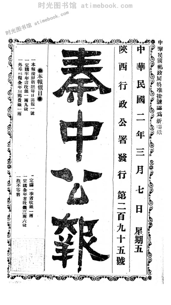 书籍名称:《秦中公报》1913-1915年合集