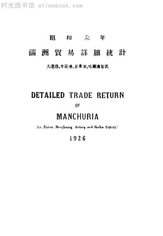 | 网盘路径:/时光图书馆珍藏系列/书籍文件/老图书/《满洲贸易详细统计(一九二六)上》电子版合集.db | ||