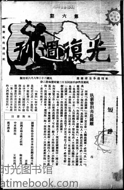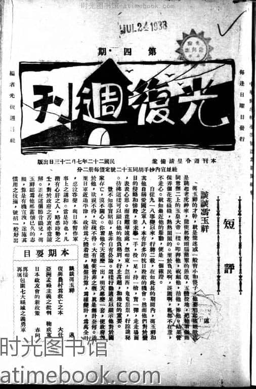 书籍名称:《光复周刊》(北平)1933-1933年合集