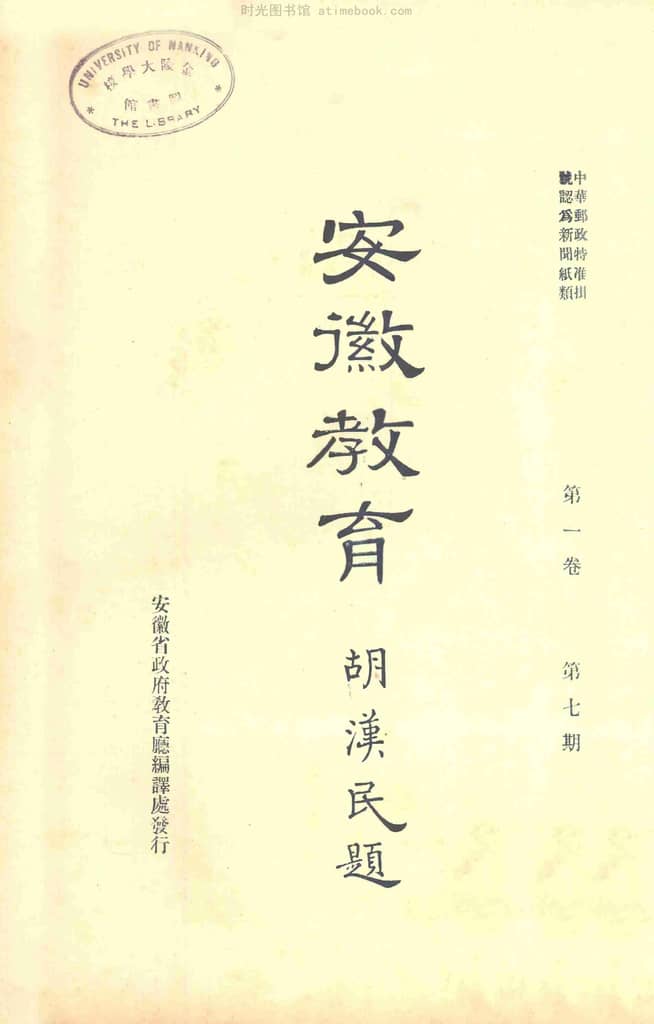 网盘路径:/时光图书馆珍藏系列/书籍文件/老杂志、老期刊/民国期刊/安徽/《安徽教育》(立煌)1930-1932年合集.db