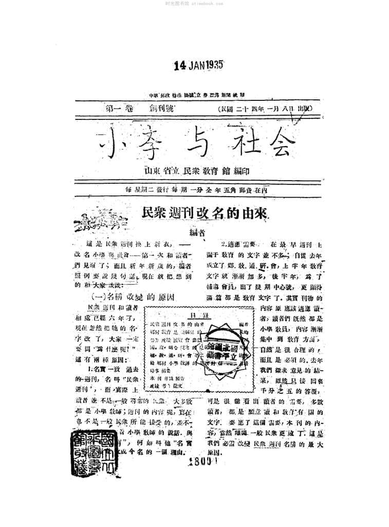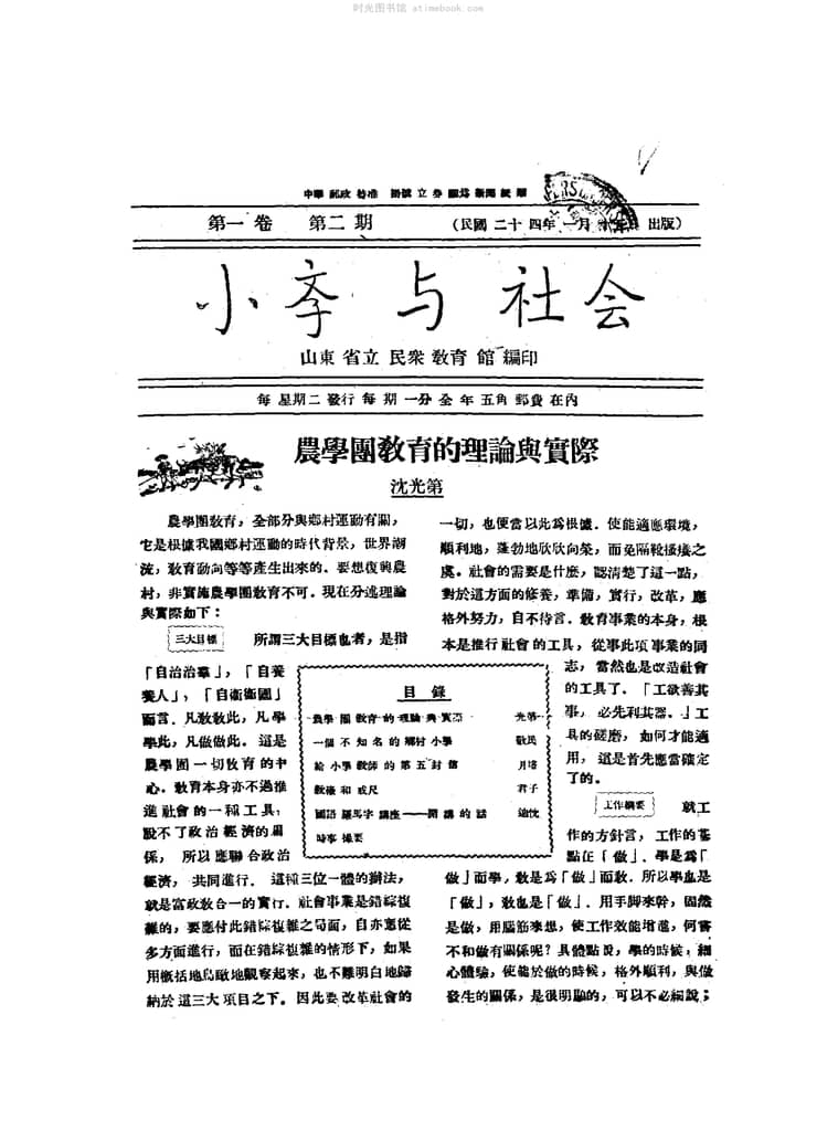 网盘路径:/时光图书馆珍藏系列/书籍文件/老杂志、老期刊/民国期刊/山东/《小学与社会》(山东)1935-1937年合集.db