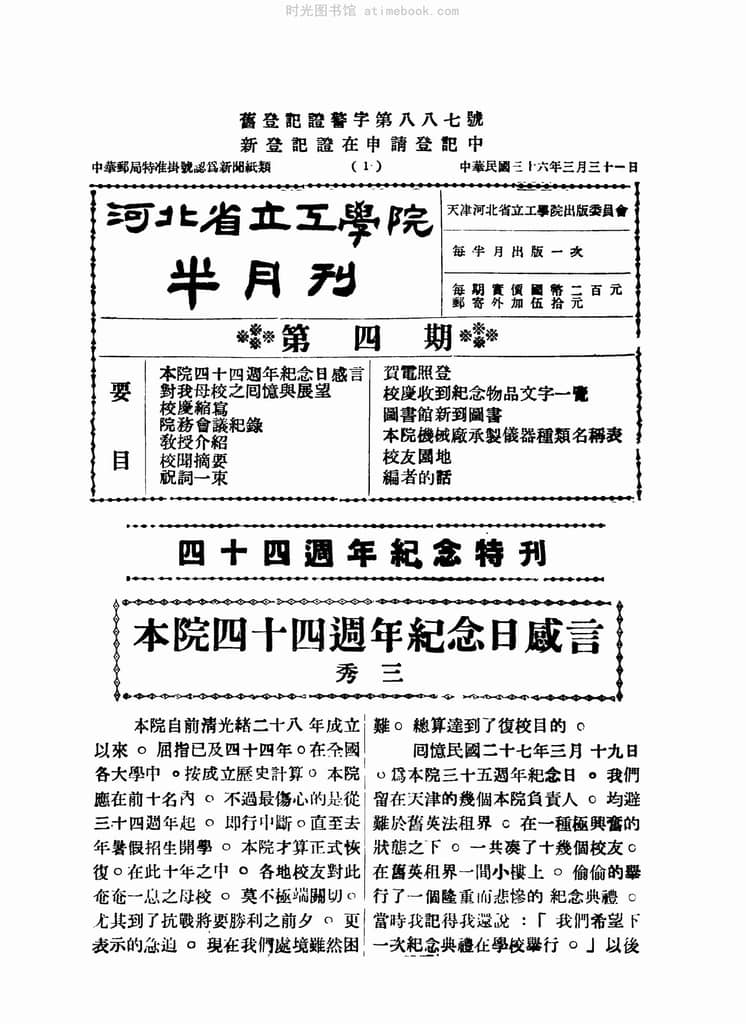 网盘路径:/时光图书馆珍藏系列/书籍文件/老杂志、老期刊/民国期刊/天津/《河北省立工学院半月刊》(天津)1947-1948年合集.db