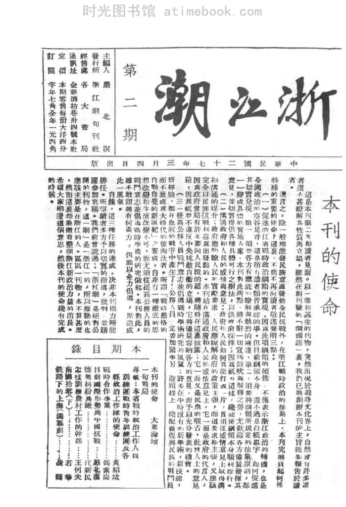 网盘路径:/时光图书馆珍藏系列/书籍文件/老杂志、老期刊/民国期刊/浙江/《浙江潮》(金华)1938-1944年合集.db