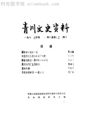 | 网盘路径:/时光图书馆珍藏系列/书籍文件/老图书/《青川文史资料_1989年_第1期_总第16期》电子版合集.db | ||