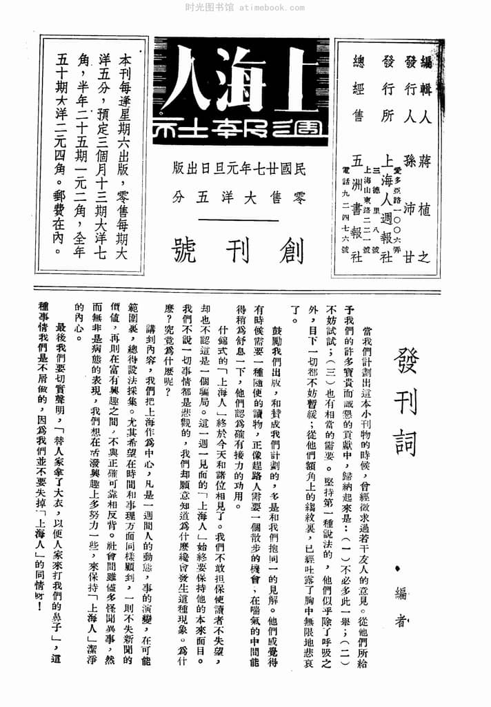 书籍名称:《上海人:新闻周报》(上海)1938-1938年合集