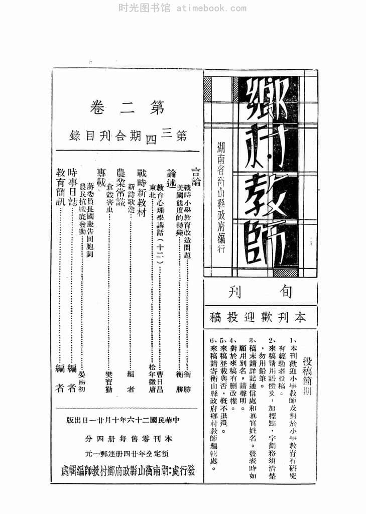书籍名称:《乡村教师》(湖南衡山县)1937-1937年合集