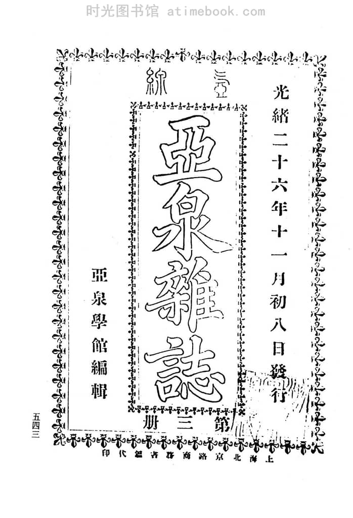网盘路径:/时光图书馆珍藏系列/书籍文件/老杂志、老期刊/民国期刊/上海/《亚泉杂志》(上海)1900-1901年合集.db