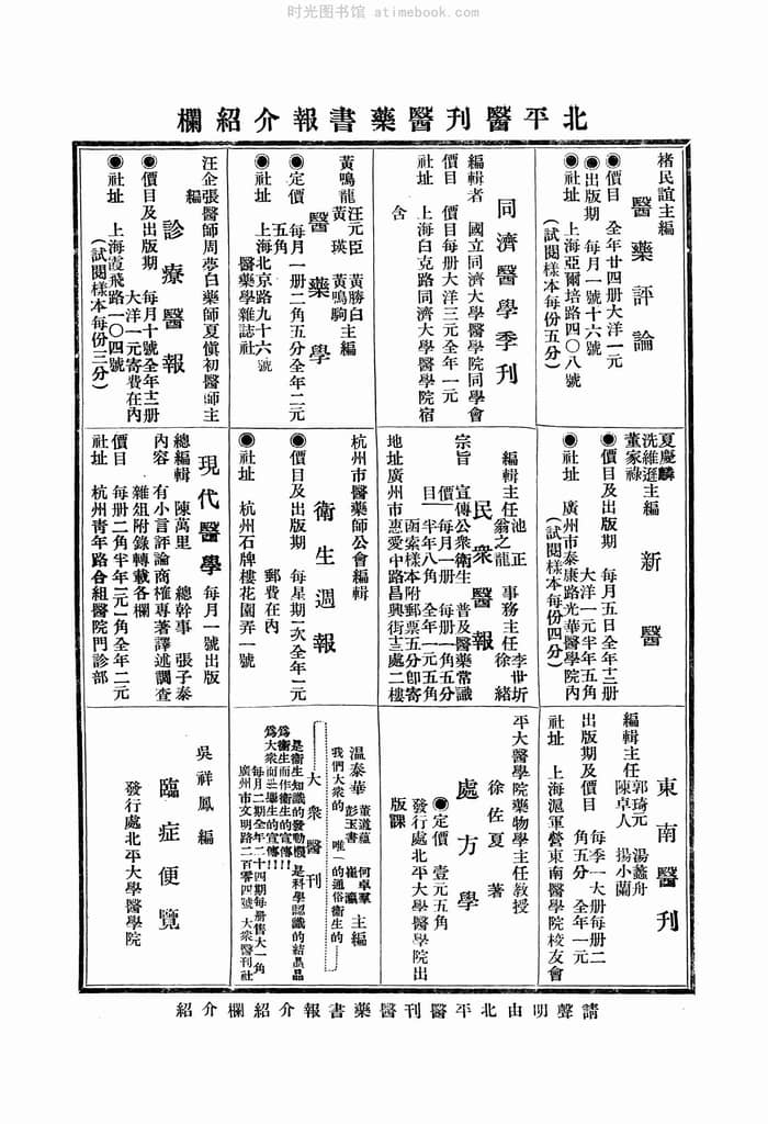 网盘路径:/时光图书馆珍藏系列/书籍文件/老杂志、老期刊/民国期刊/北京/《北平医刊》(北平)1933-1937年合集.db