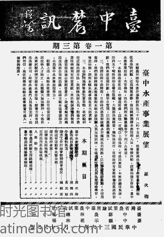 网盘路径:/时光图书馆珍藏系列/书籍文件/老杂志、老期刊/民国期刊/台湾/《台中农讯》(台湾)1947-1948年合集.db