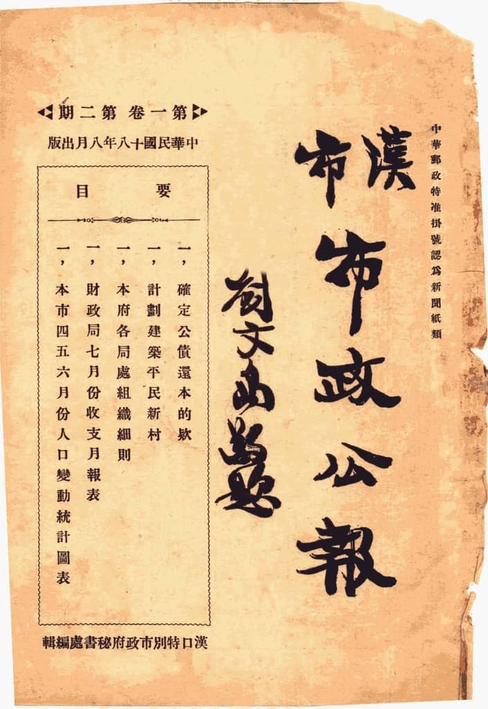 书籍名称:《汉市市政公报》(汉口)1929-1929年合集