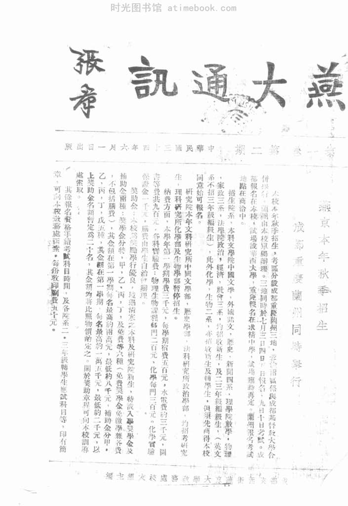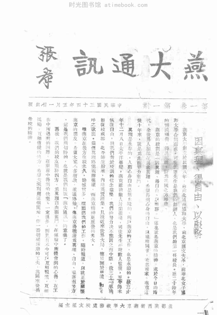 网盘路径:/时光图书馆珍藏系列/书籍文件/老杂志、老期刊/民国期刊/四川/《燕大通讯》(成都)1945-1946年合集.db
