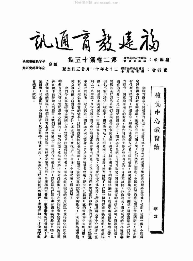 网盘路径:/时光图书馆珍藏系列/书籍文件/老杂志、老期刊/民国期刊/福建/《福建教育通讯》1938-1940年合集.db