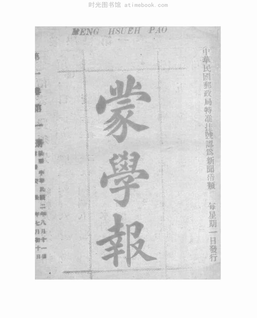 网盘路径:/时光图书馆珍藏系列/书籍文件/老报纸/《蒙学报》(不详)1913-1913年合集.db
