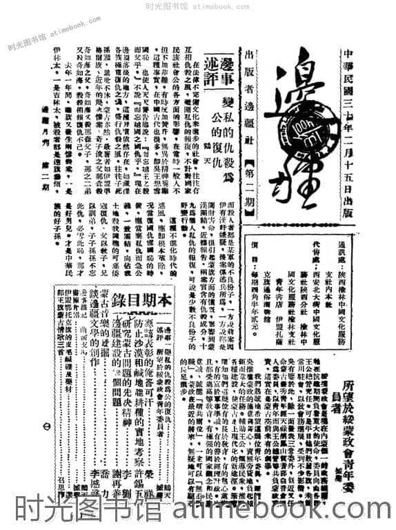 网盘路径:/时光图书馆珍藏系列/书籍文件/老杂志、老期刊/民国期刊/陕西/《边疆》(西安)1941-1941年合集.db