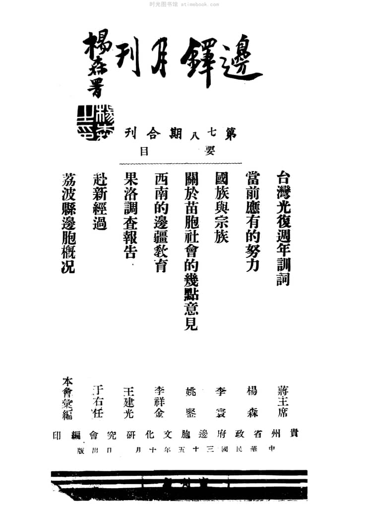 网盘路径:/时光图书馆珍藏系列/书籍文件/老杂志、老期刊/民国期刊/贵州/《边铎月刊》(贵州)1946-1948年合集.db