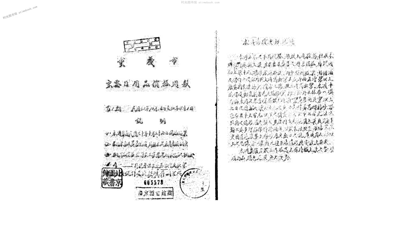 书籍名称:《重庆市主要日用品价格周报》(重庆)1941-1943年合集