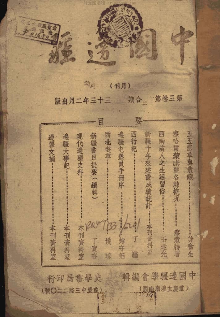 书籍名称:《中国边疆》(重庆)1944-1944年合集