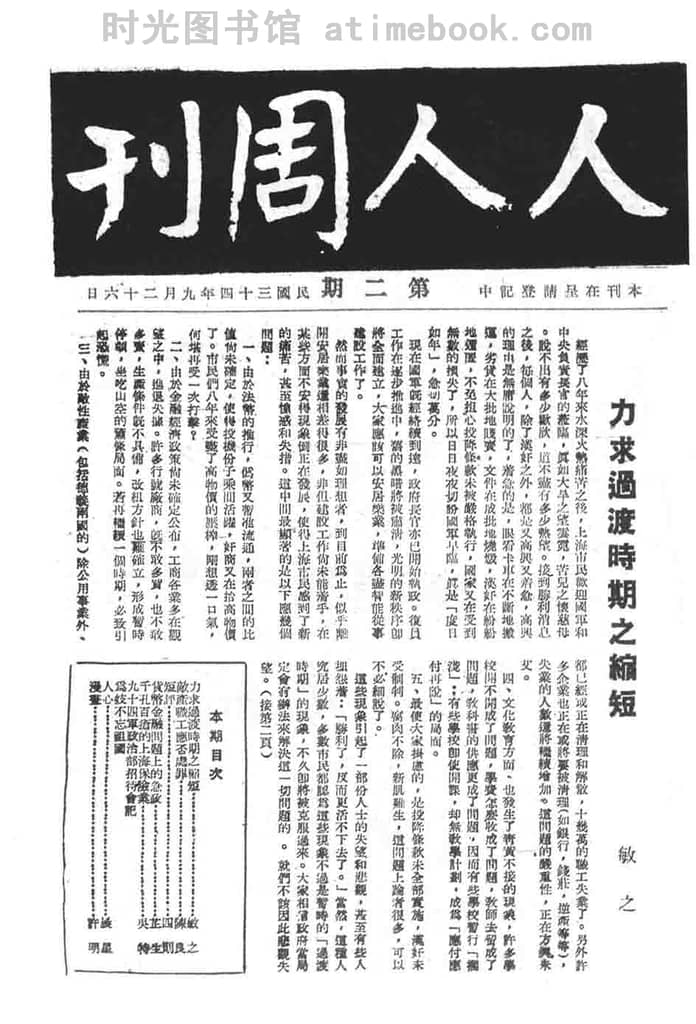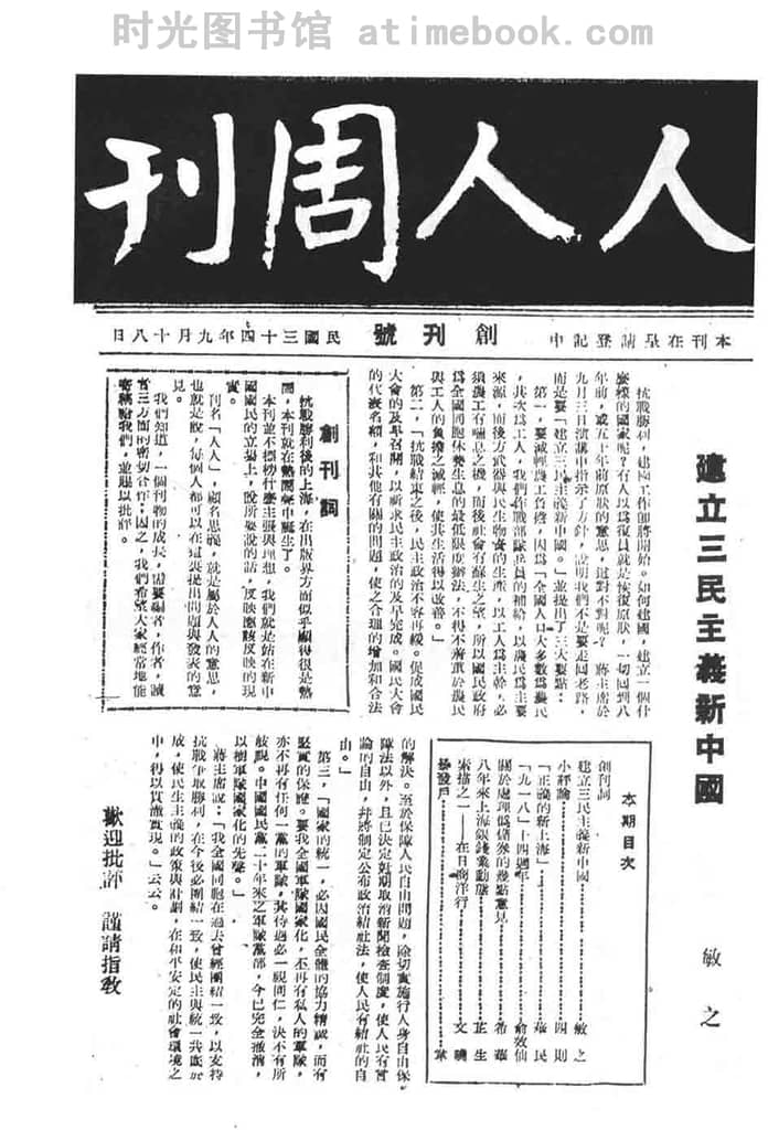 书籍名称:《人人周刊》(上海)1945-1946年合集