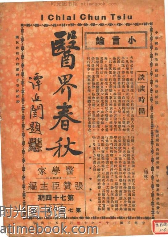 书籍名称:《医界春秋》(上海)1927-1937年合集