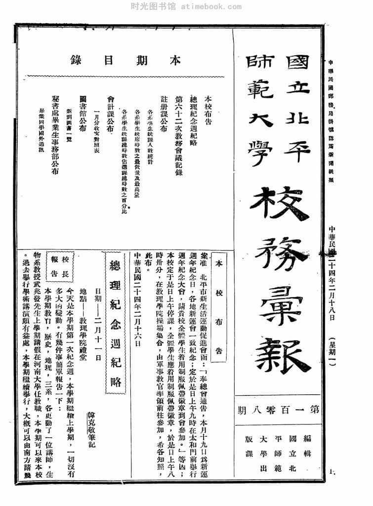 书籍名称:《国立北平师范大学校务汇报》(北平)1935-1937年合集