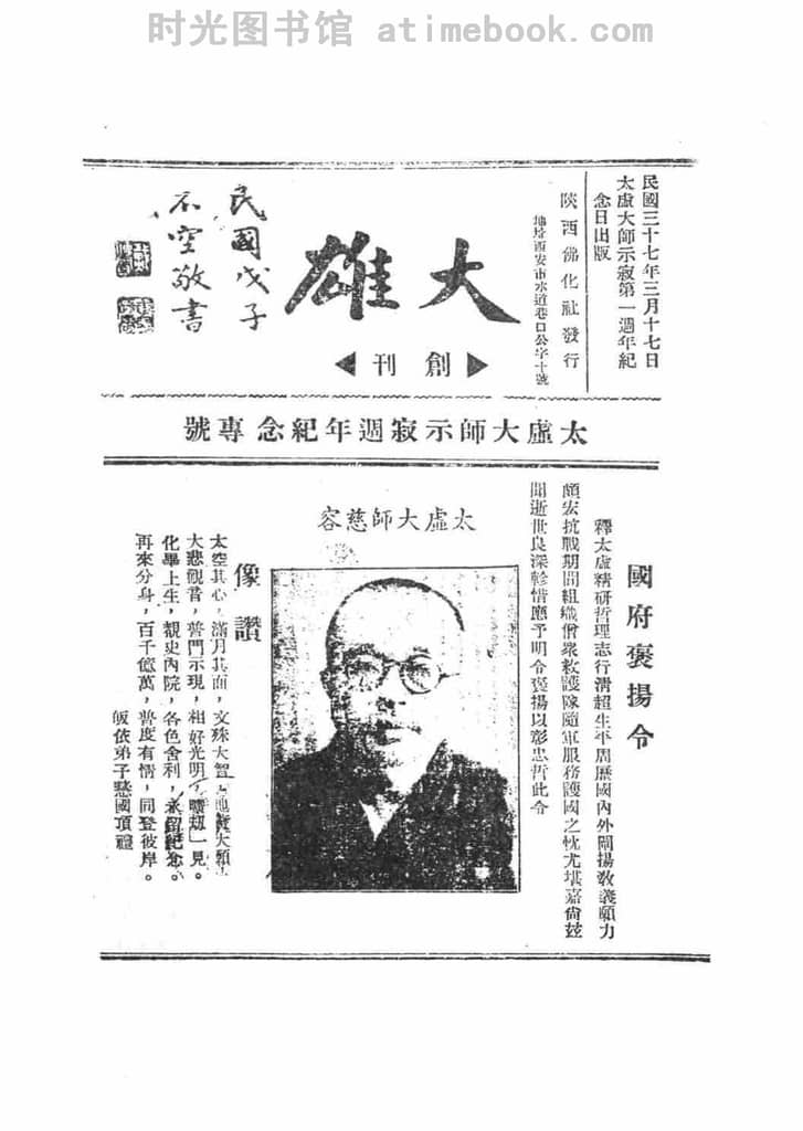 网盘路径:/时光图书馆珍藏系列/书籍文件/老杂志、老期刊/民国期刊/陕西/《大雄》(西安)1948-1948年合集.db