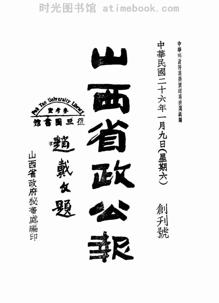 网盘路径:/时光图书馆珍藏系列/书籍文件/老报纸/山西/《山西省政公报》(太原)1937-1937年合集.db