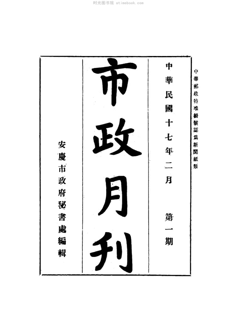 网盘路径:/时光图书馆珍藏系列/书籍文件/老杂志、老期刊/民国期刊/安徽/《市政月刊》(安徽安庆)1928-1928年合集.db