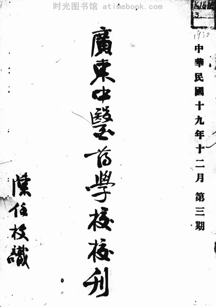 书籍名称:《广东中医药学校》(广东)1930-1933年合集