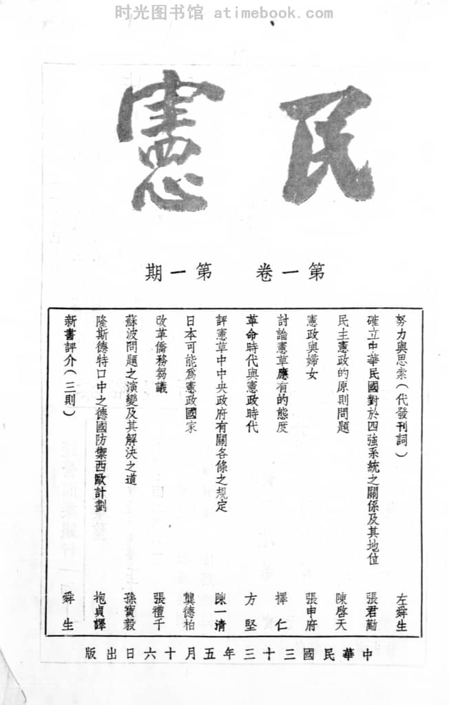 网盘路径:/时光图书馆珍藏系列/书籍文件/老杂志、老期刊/民国期刊/四川/《民宪半月刊》(重庆)1944-1945年合集.db