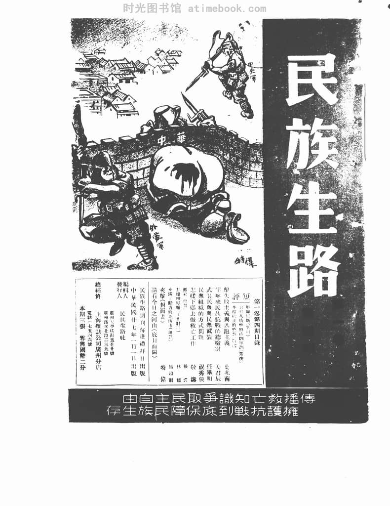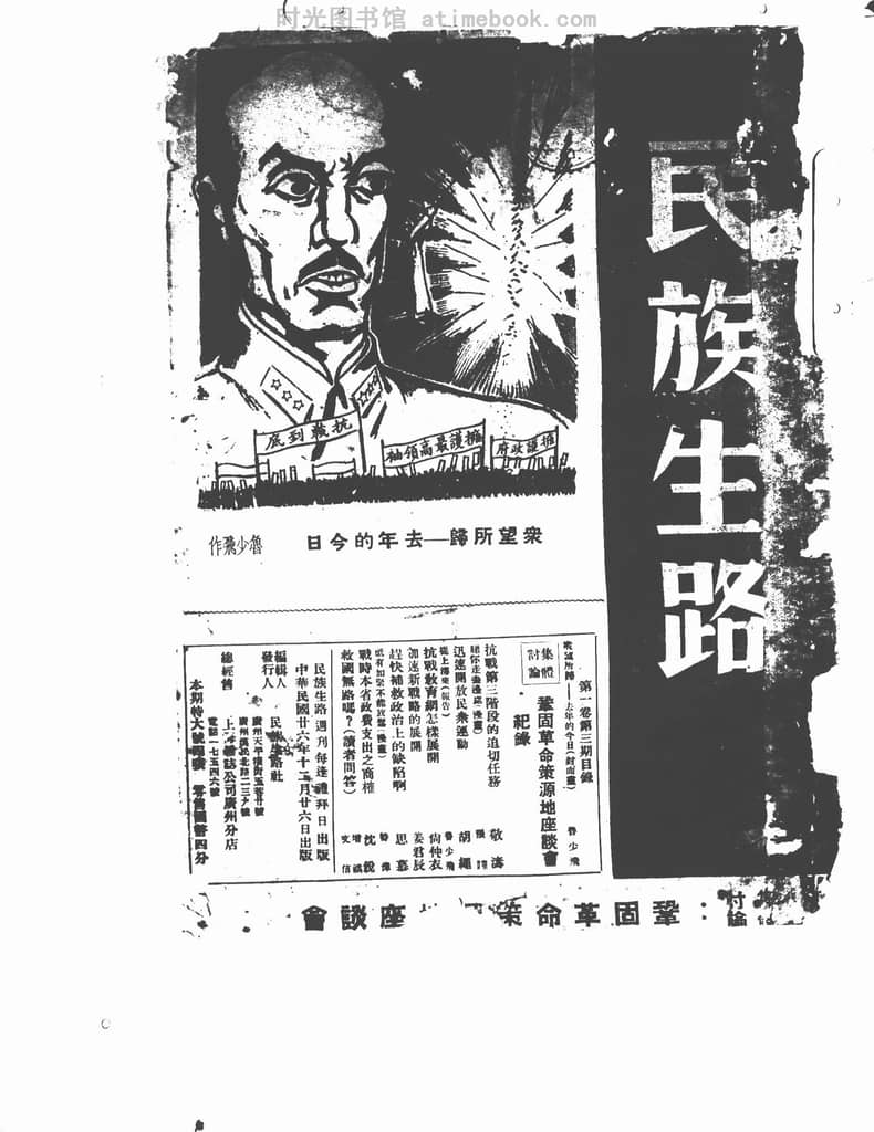 网盘路径:/时光图书馆珍藏系列/书籍文件/老杂志、老期刊/民国期刊/广东/《民族生路》(广州)1937-1938年合集.db