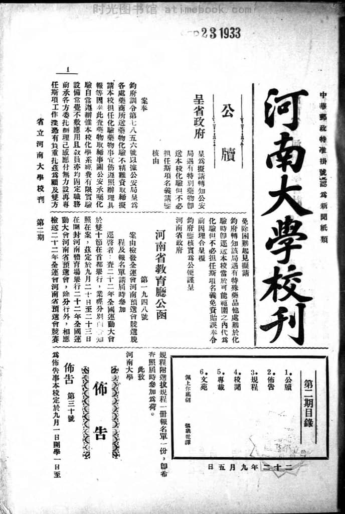 网盘路径:/时光图书馆珍藏系列/书籍文件/老杂志、老期刊/民国期刊/河南/《河南大学校刊》(开封)1933-1933年合集.db