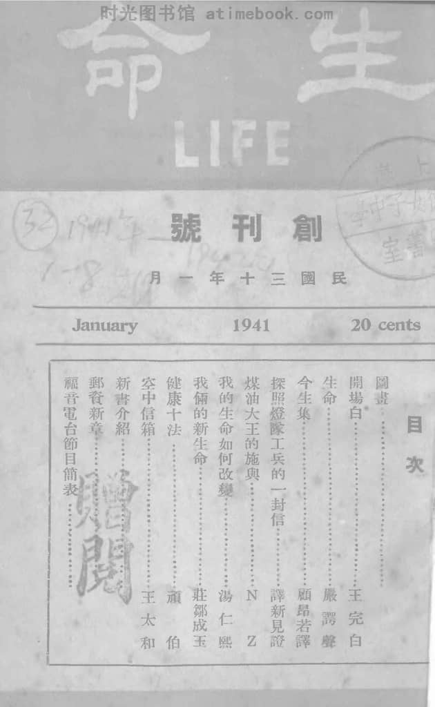 网盘路径:/时光图书馆珍藏系列/书籍文件/老杂志、老期刊/民国期刊/上海/《生命》(上海)1941-1942年合集.db