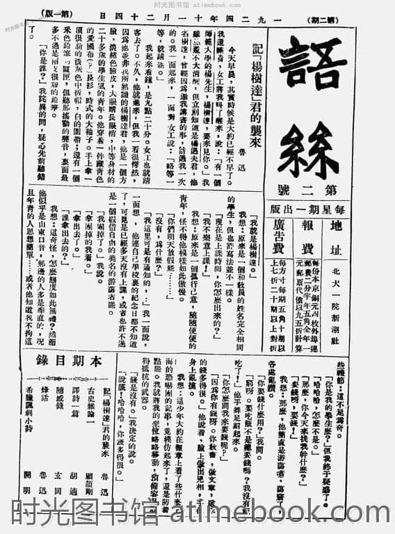 网盘路径:/时光图书馆珍藏系列/书籍文件/老杂志、老期刊/民国期刊/北京/《语丝周刊》(北京)1924-1930年合集.db