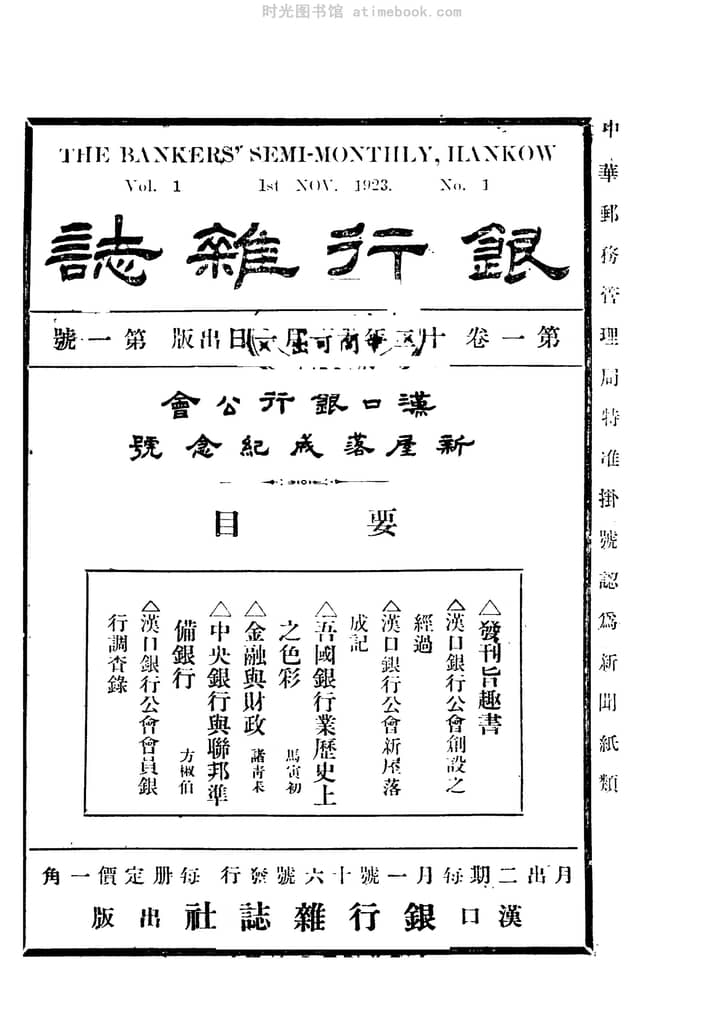 网盘路径:/时光图书馆珍藏系列/书籍文件/老杂志、老期刊/民国期刊/湖北/《银行杂志》(汉口)1923-1924年合集.db