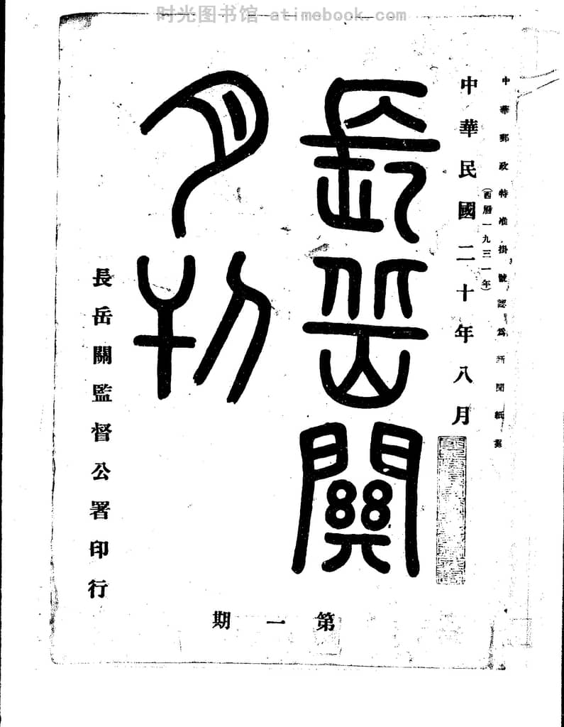 书籍名称:《长岳关月刊》(长沙)1931-1931年合集