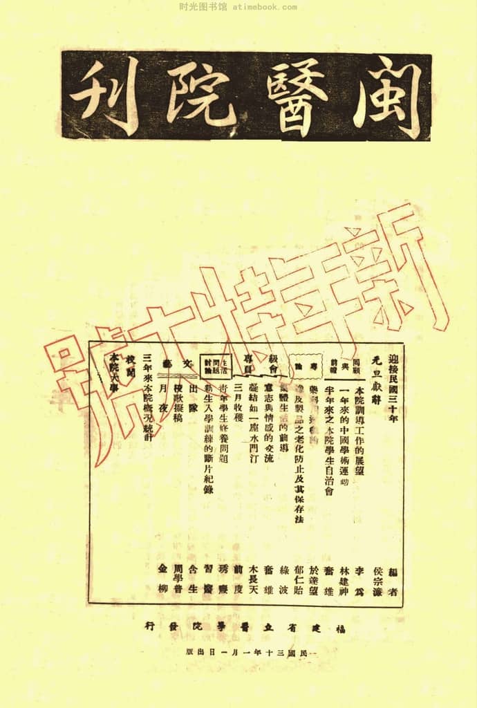 网盘路径:/时光图书馆珍藏系列/书籍文件/老杂志、老期刊/民国期刊/福建/《闽医院刊》(福建)1941-1945年合集.db